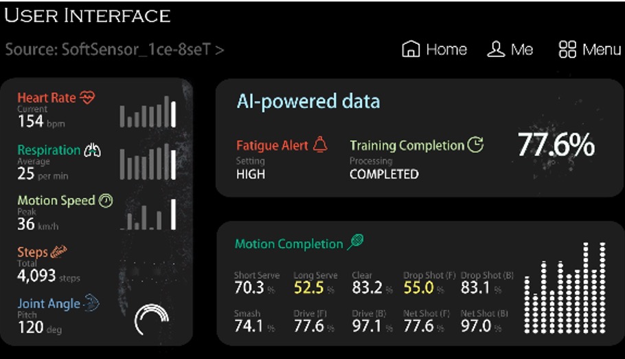 Our stretchable and durable textile sensor system is tailored for sports training, offering crucial biomechanical and physiological data to support informed decision-making.